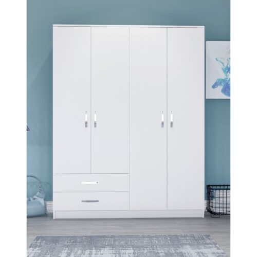 Metalia Novado 4 Kapaklı 2 Çekmeceli Gardırop – Beyaz