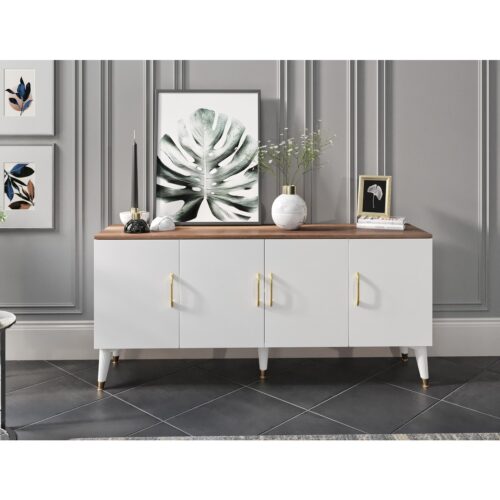 Rani Je166 Kahve Köşesi Çok Amaçlı Dolap 4 Kapaklı 2 Çekmeceli Kiler Mutfak Dolabı Sepet Ceviz – Beyaz