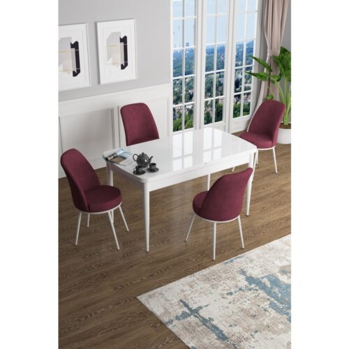 Canisa Concept Han Serisi 70 x 114 Cm, Açılabilir Mdf Mutfak Masa Takımı, Beyaz Masa ve 4 Sandalye