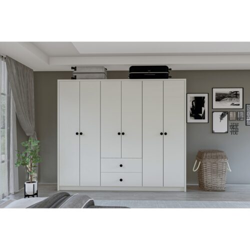 Metalia Gm 069 Delüx 6 Kapı 2 Çekmeceli Düğme Kulplu Gardırop