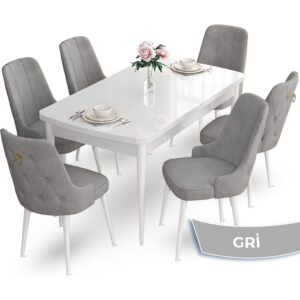 Zen Serisi Mdf Açılabilir Mutfak Masası Takımı-Yemek Masası Takımı Beyaz Masa+6 Sandalye