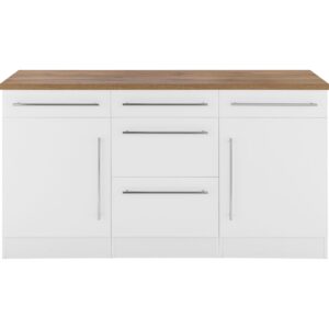 Bimossa Edgar L4810 Mutfak Adası Bar Masası 160 cm Ahşap Üst Beyaz Alt Çok Amaçlı Depolamalı Oturmalı Masa