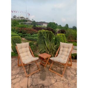 EVVON AHŞAP KATLANIR BİSTRO SET 2Lİ MİNDERLİ BALKON BAHÇE MOBİLYASI