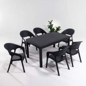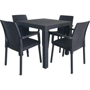MANDELLA 80 x 80 4 KİŞİLİK ANTRASİT PLASTİK BAHÇE MOBİLYASI MUTFAK BALKON TAKIMI
