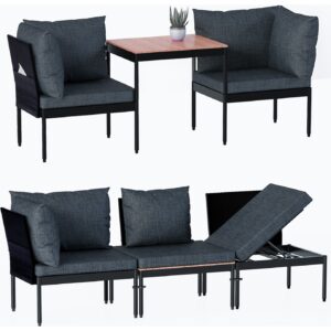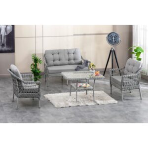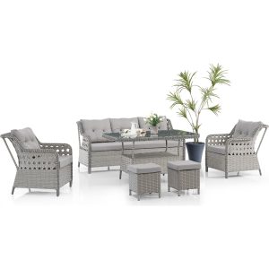 EVDEMO Deniz Rattan Puflu Bahçe Balkon Takımı 3+1+1 Gri