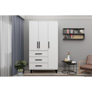 Metalia Gm 303-A Ece 3 Kapı 3 Çekmeceli Ayaklı Siyah Kulplu Gardırop