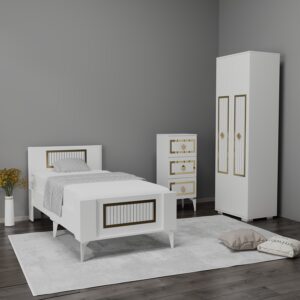 Demonte Dekor Norra Çocuk Genç Odası Takımı (B-H-L) Beyaz-Altın
