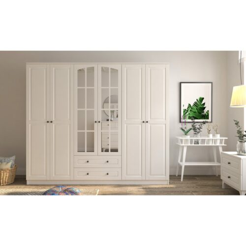 Rabi Mobilya Lina Country 6 Kapak 2 Çekmeceli Aynalı Gardırop
