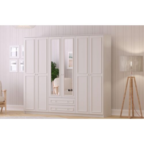 Metalia Gm 036 Lüx 6 Kapı 2 Çekmeceli Düğme Kulplu Aynalı Gardırop