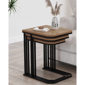 Wood Aria Mantar Sehpa 3’lü Set – Şık ve Fonksiyonel Zigon Sehpa, Yan Sehpa ve Orta Sehpa Takımı