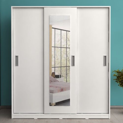 Metalia Sameaynalı Sürgü Kapaklı Gardırop – Beyaz