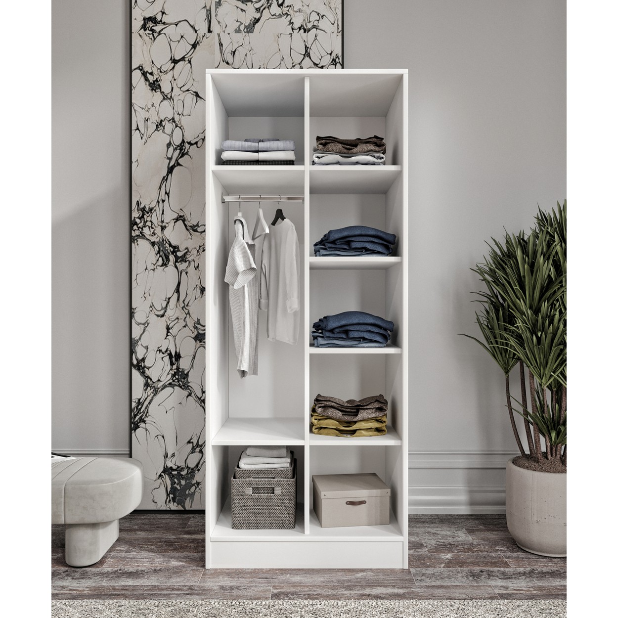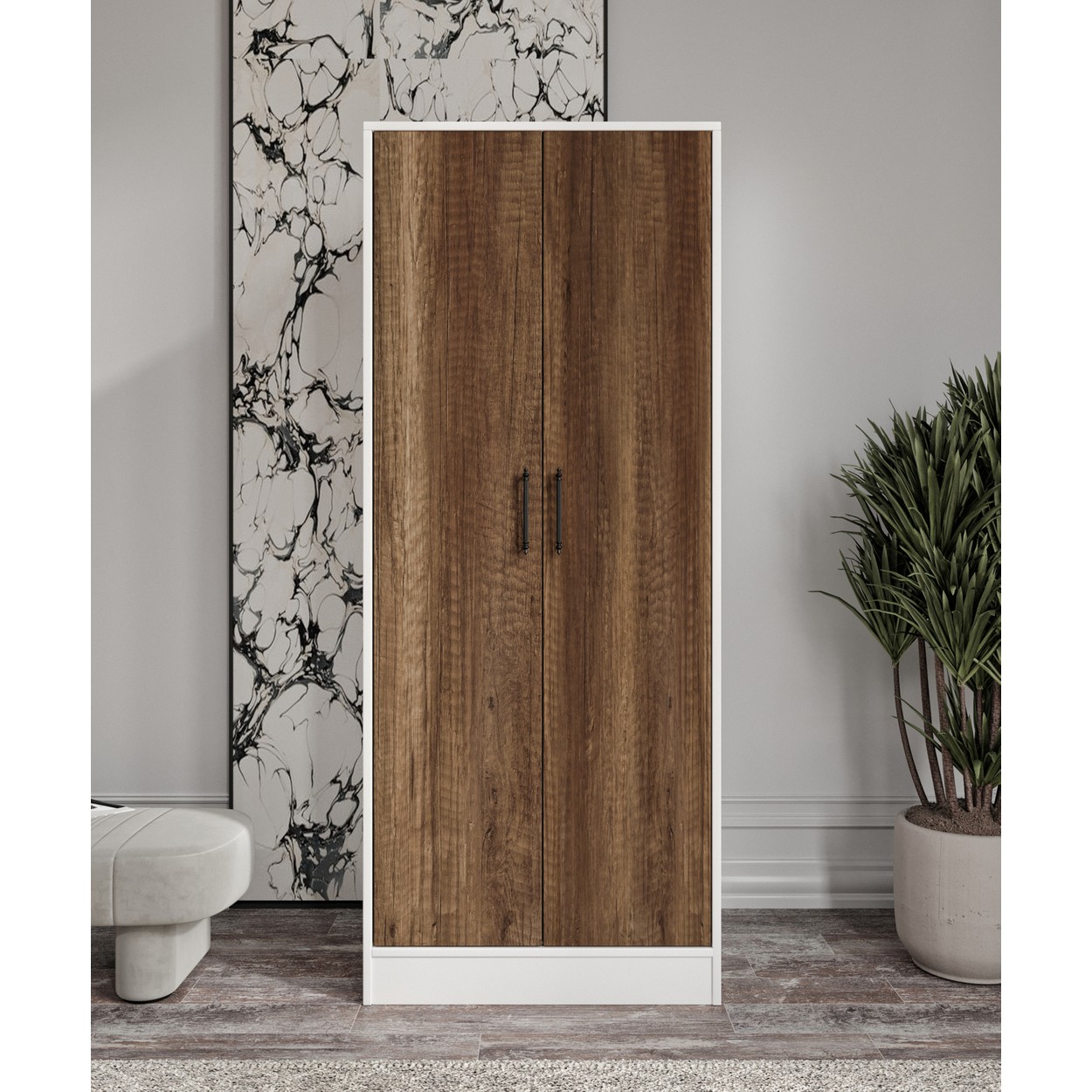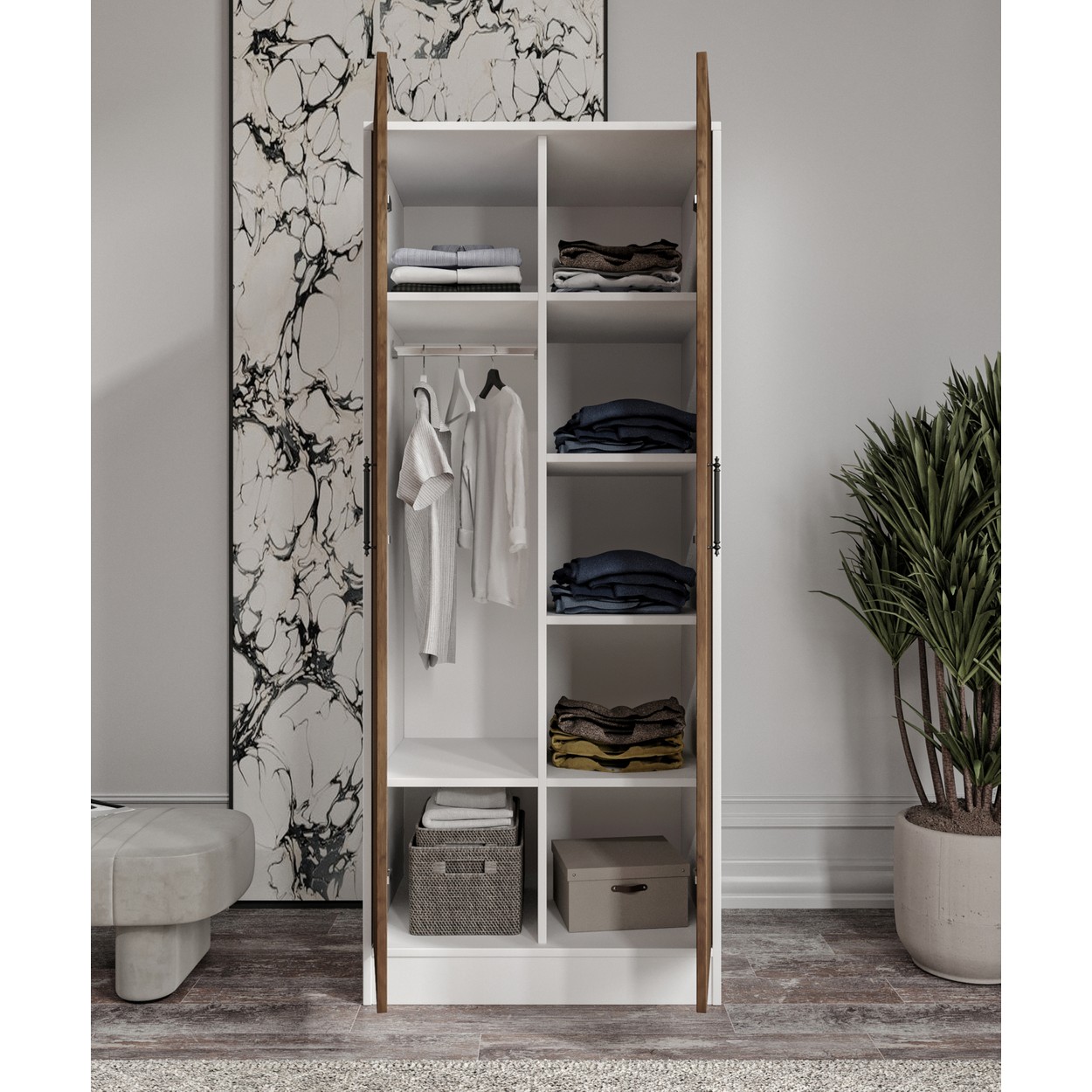 %100 Mdf 2 Kapaklı 2 Çekmeceli 7 Raflı ve 1 Askı Borulu Elbise Dolabı Cabinse Soft Beyaz Meşe