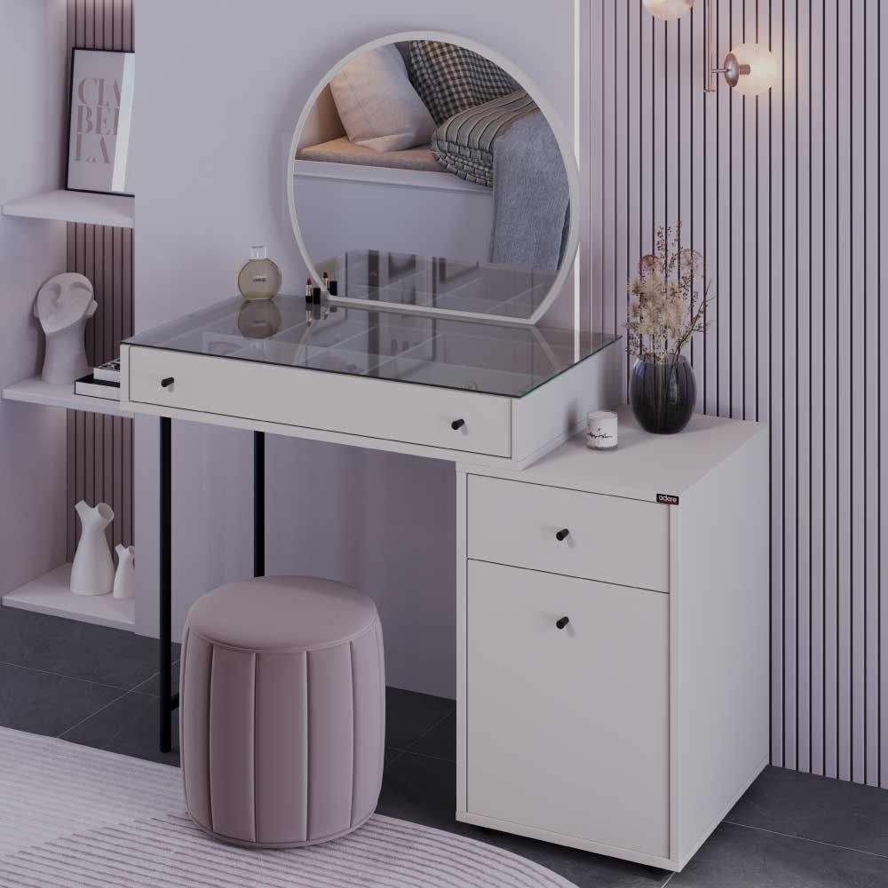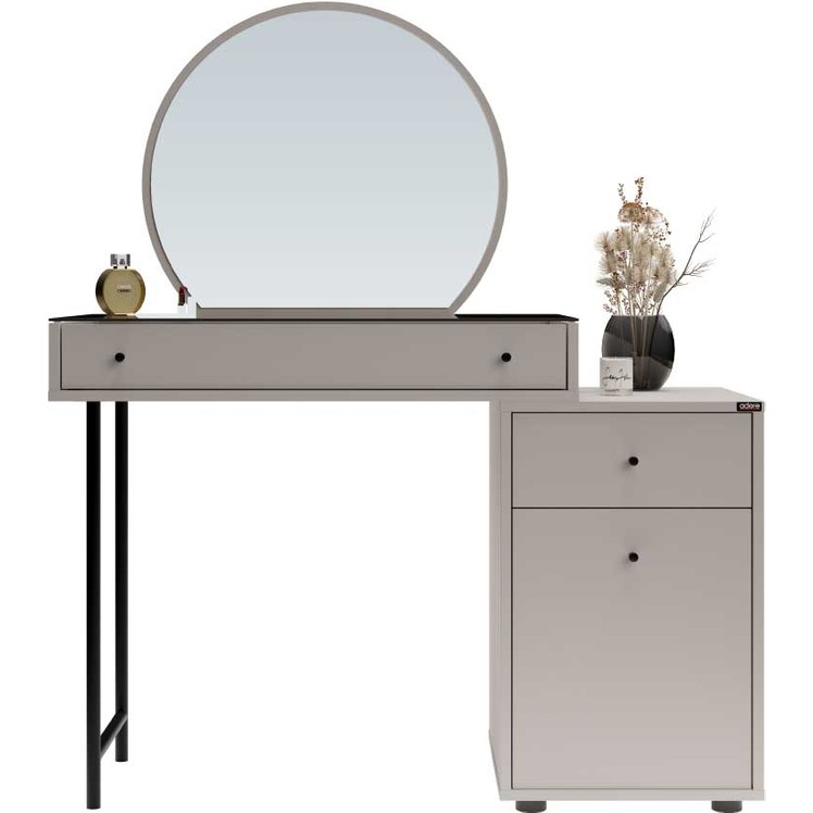 Adore Mobilya Dior Aynalı Makyaj Masası-Vizon 108x134x47 Cm