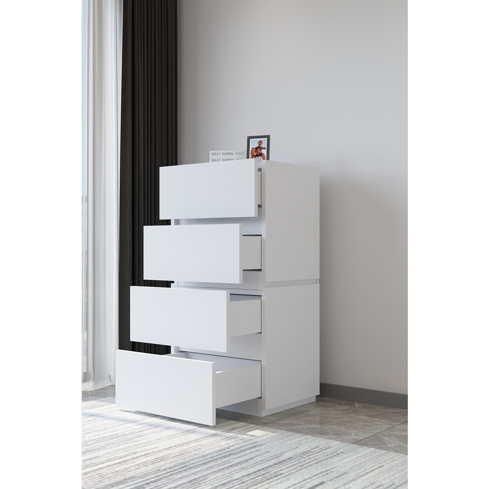 AE-2034 Galata 4 Çekmeceli Patentli Beyaz Şifonyer Yatak Odası Bebek Odası Komodin