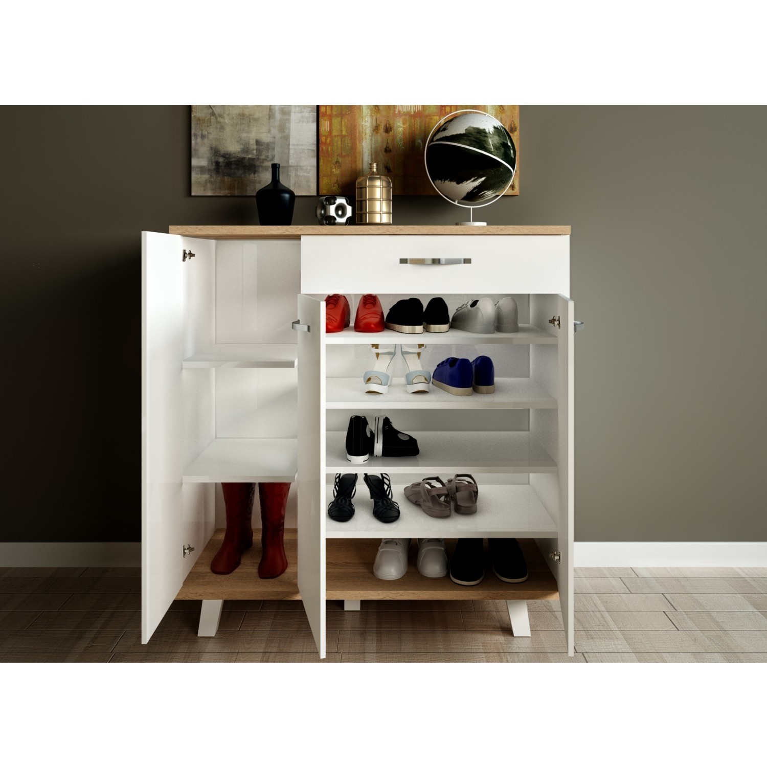Aeka 1076 Lavantes 3 Kapaklı Tek Çekmeceli Raflı Ayakkabılık
