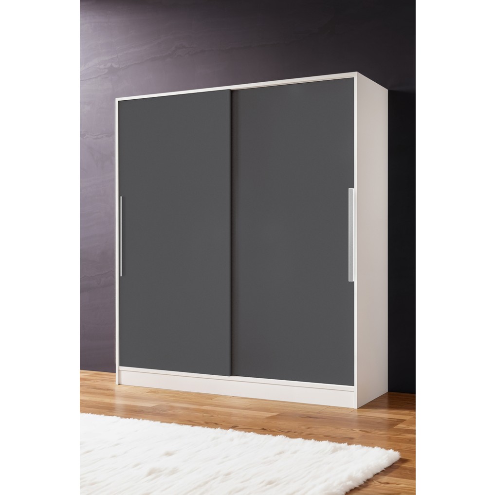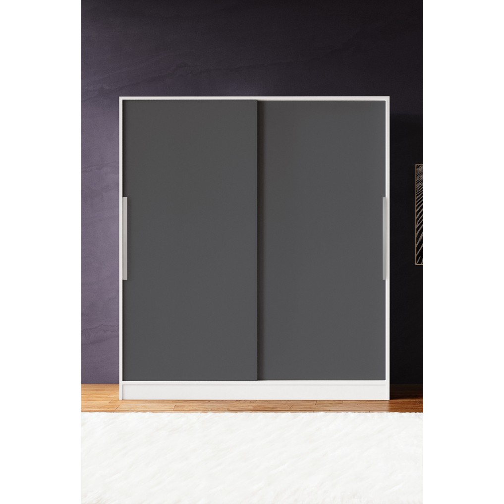 Aeka AE-4001 Zambak Sürgülü Dolap Çok Raflı Çekmeceli Askılı Beyaz Kasalı (Gri-Gri Kapaklı) Gardırop