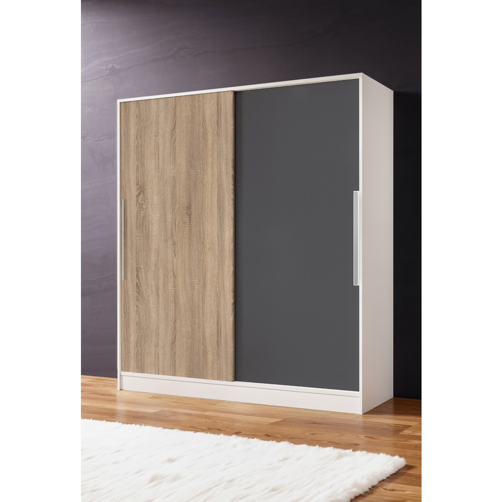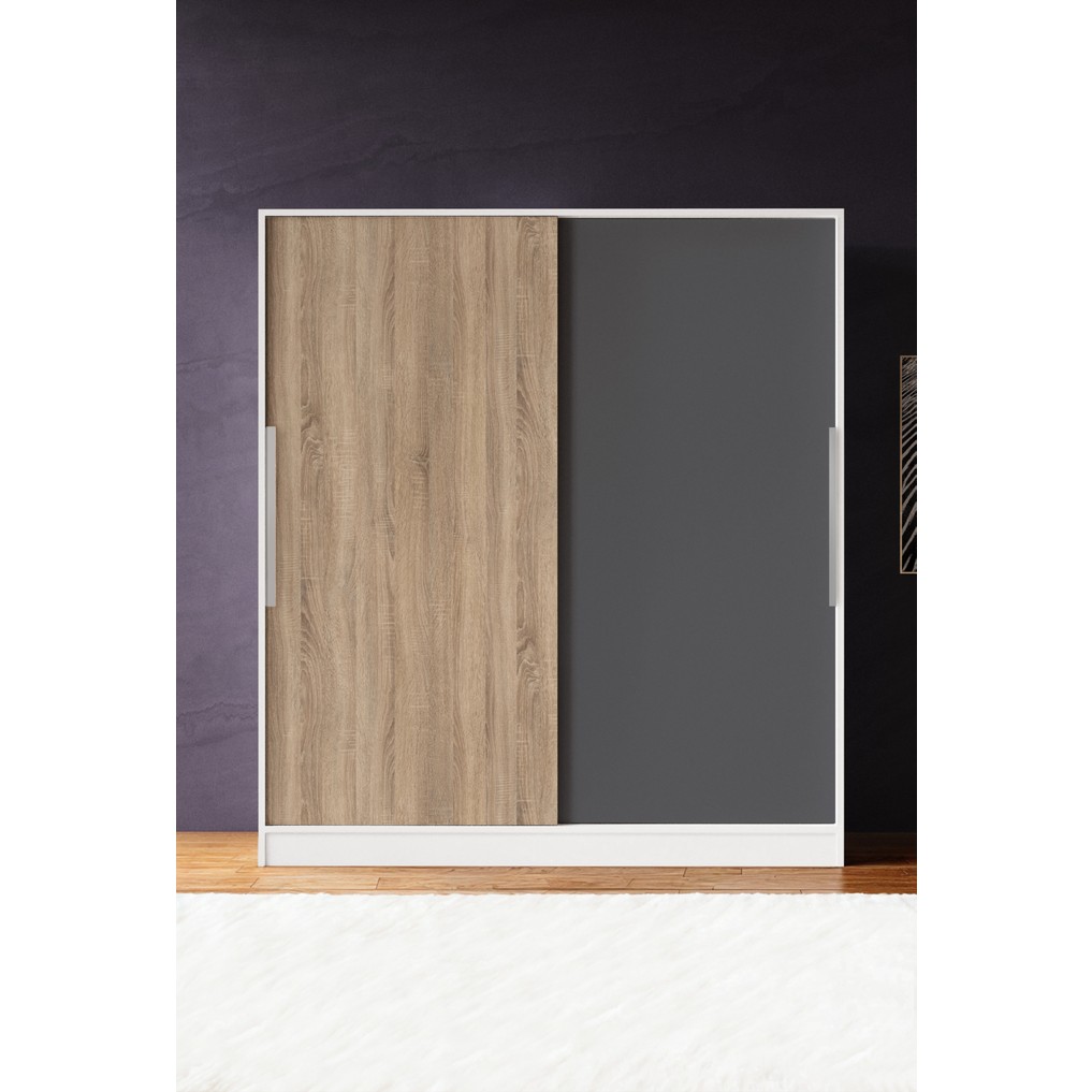 Aeka AE-4001 Zambak Sürgülü Dolap Çok Raflı Çekmeceli Askılı Beyaz Kasalı (Sonomo-Gri Kapaklı) Gardırop