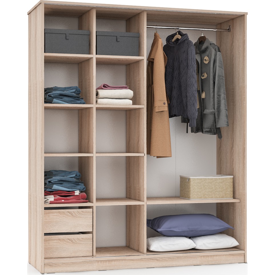Aeka Kamer Ae-4001 Zambak Sürgü Kapaklı 2 Çekmeceli Gardırop – Beyaz Meşe