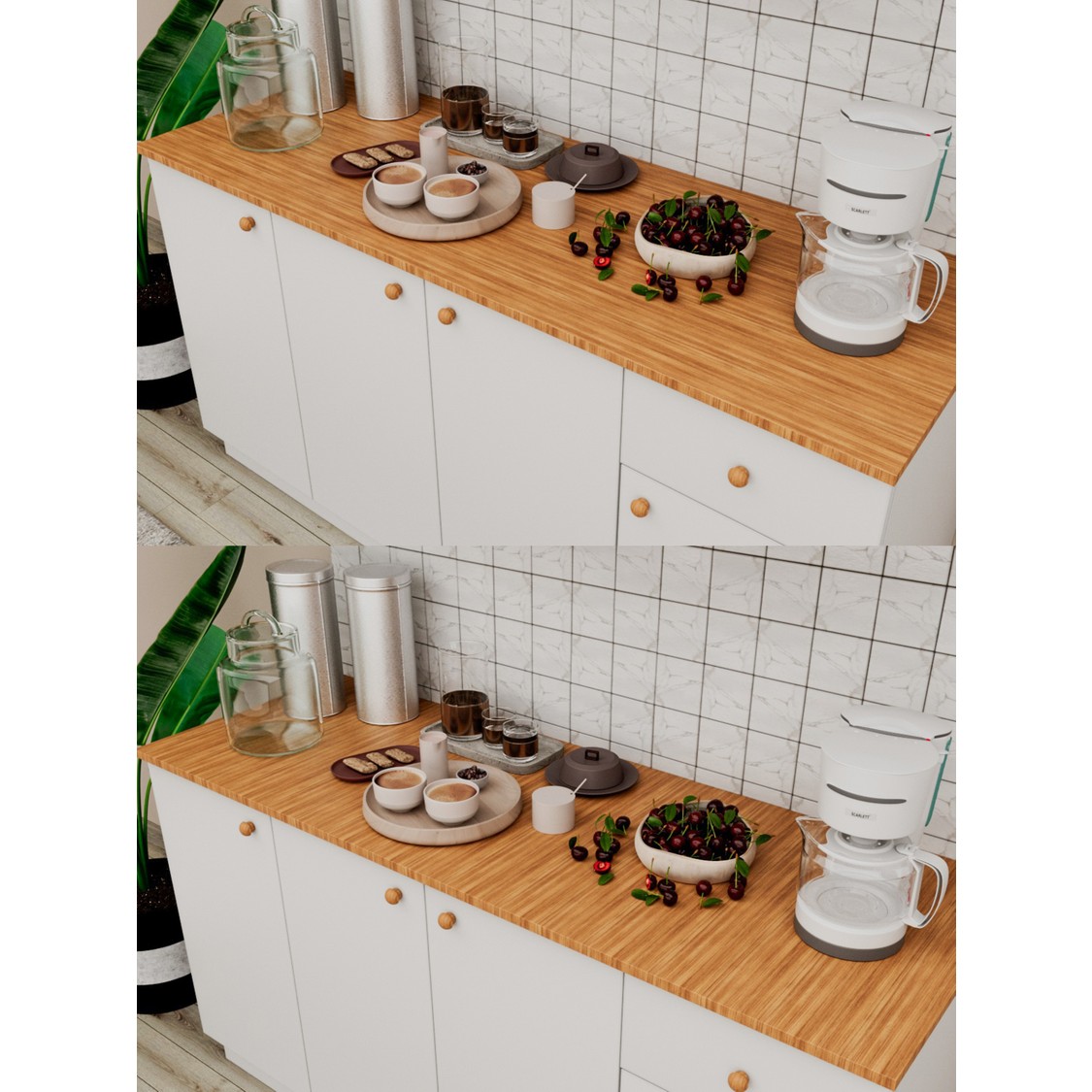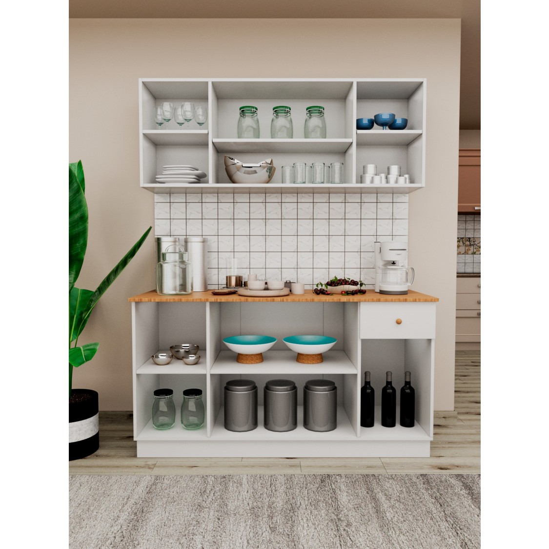Agt 160 cm Mdf Ahşap Tezgahlı Beyaz Kapaklı Hazır Mutfak Dolabı