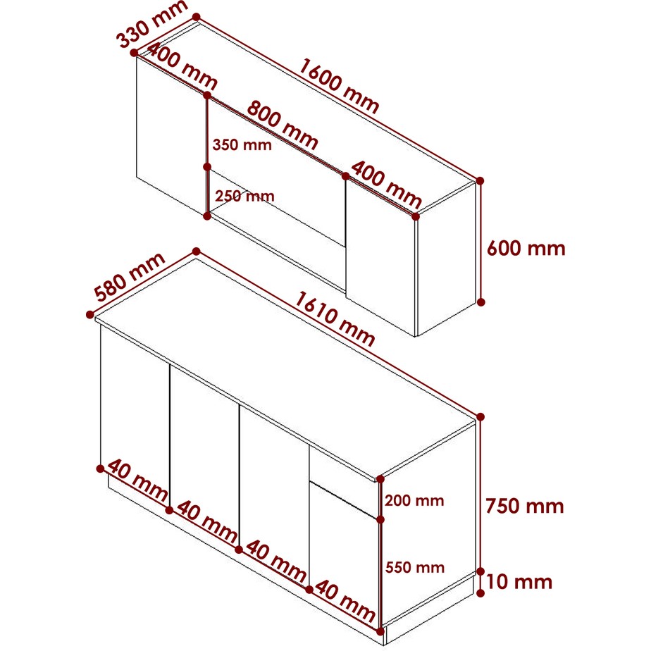 · 160 cm olan bu mutfağımız toplam 2 modülden oluşmakta (alt ve üst modül)