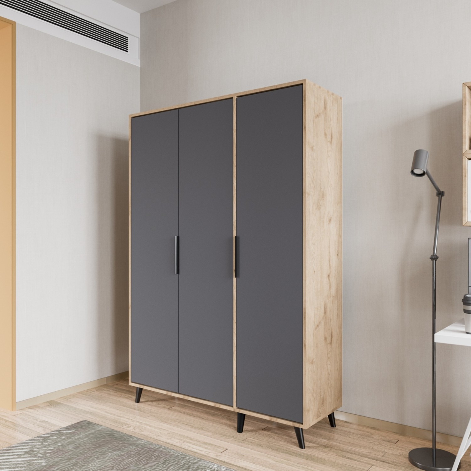 Alonex Aden Üç Kapılı Elbise Dolabı Antrasit Yatak Odası Çocuk Odası Gardırop