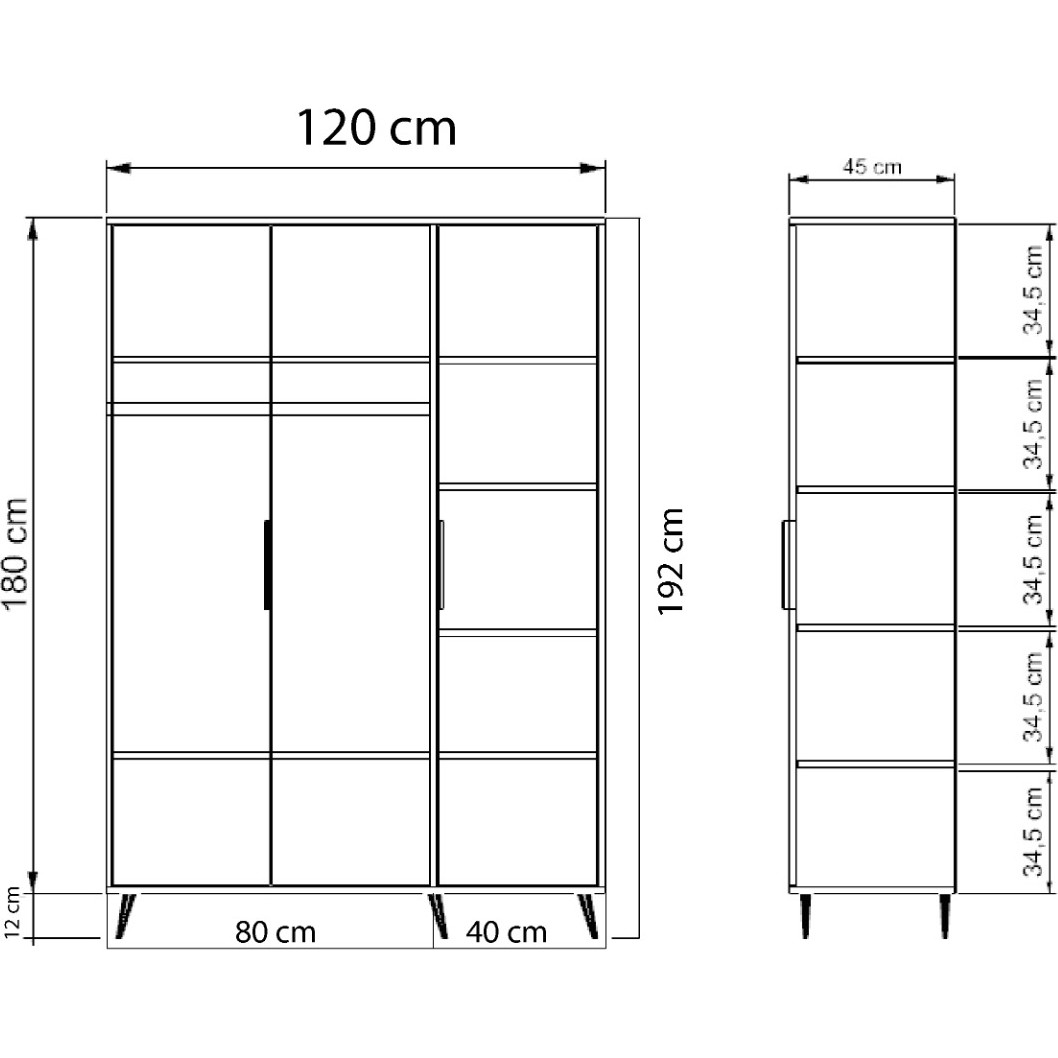• Blok Genişlik: 120 cm Yükseklik: 192 cm Derinlik: 45 cm