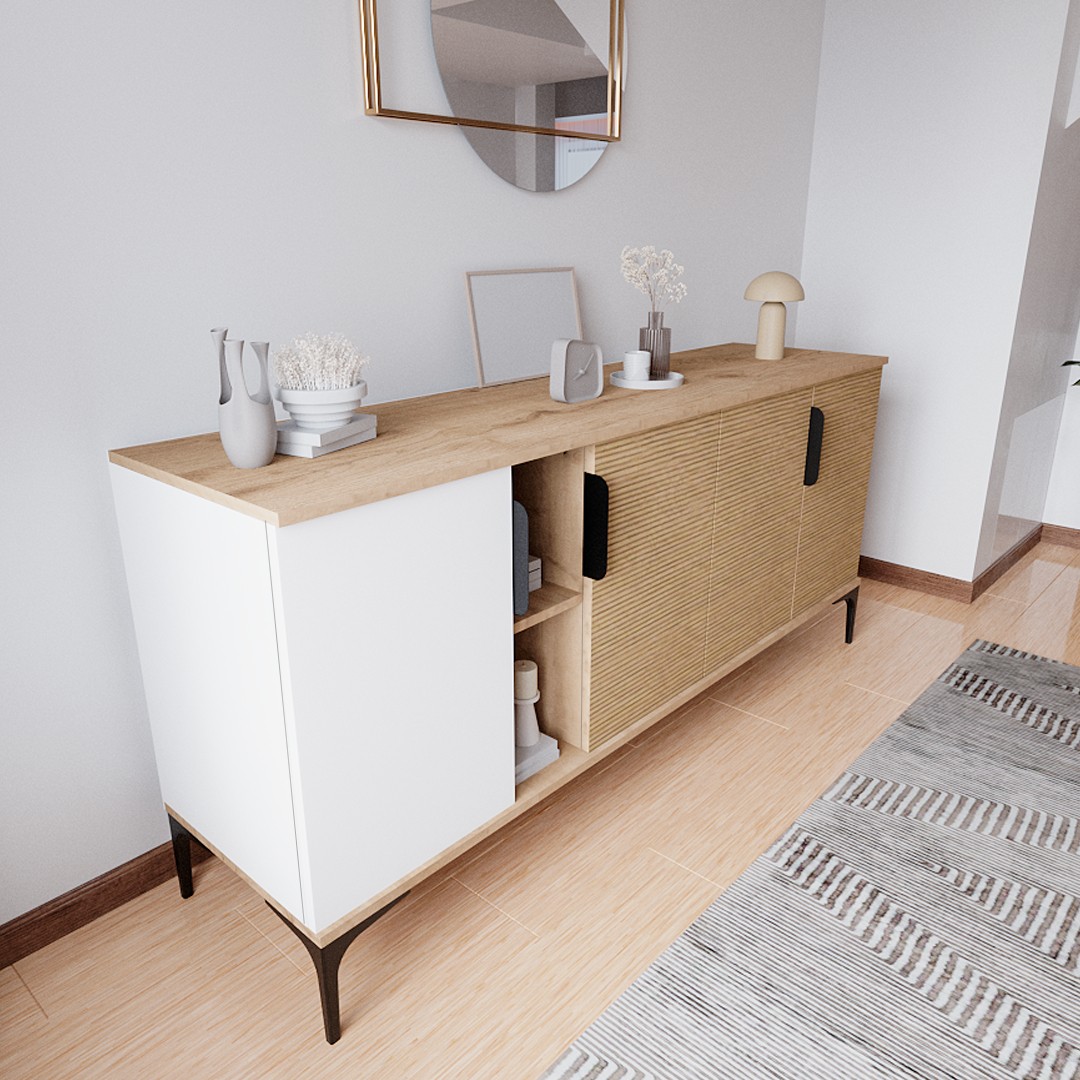 Alonex Tarz Konsol 180 cm (Metal Kulp, Sepet,beyaz) Salon Odası Konsolu Tv Konsolu