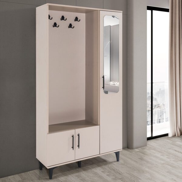 AE-3071 Patentli Ideal Aynalı Vestiyer Portmanto Ayakkabılık Raflı Askılıklı, Beyaz