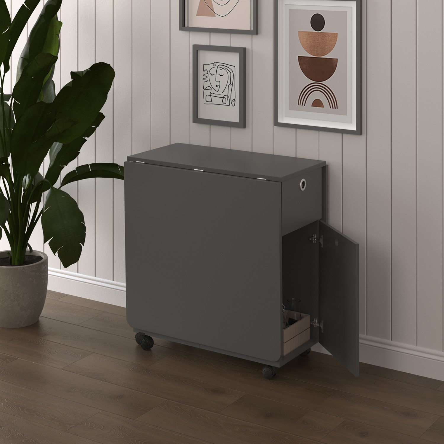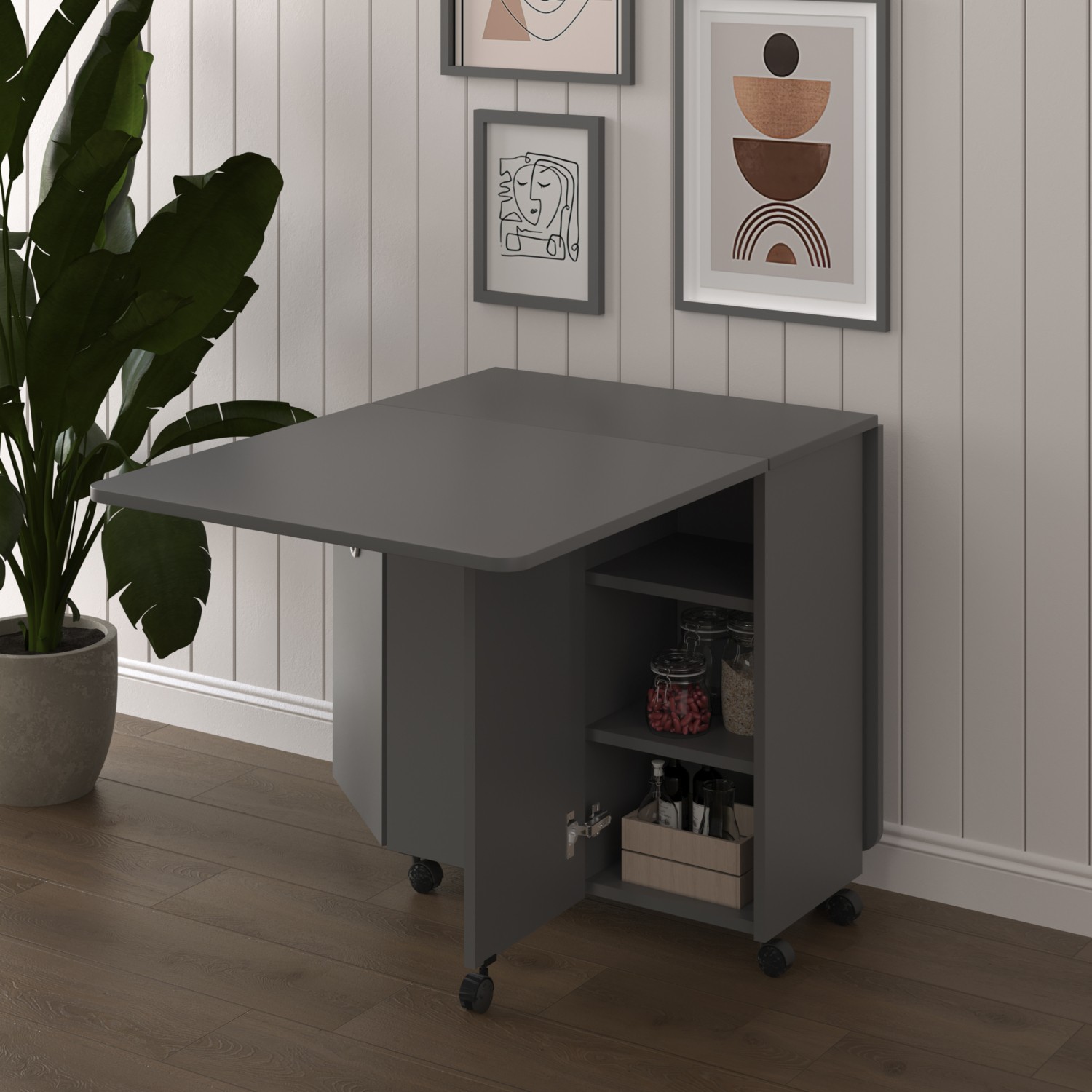 Asra Trend %100 MDFLAM Katlanır Mutfak Yemek Çalışma Masası Asra Trend KM-28 ANTRASİT