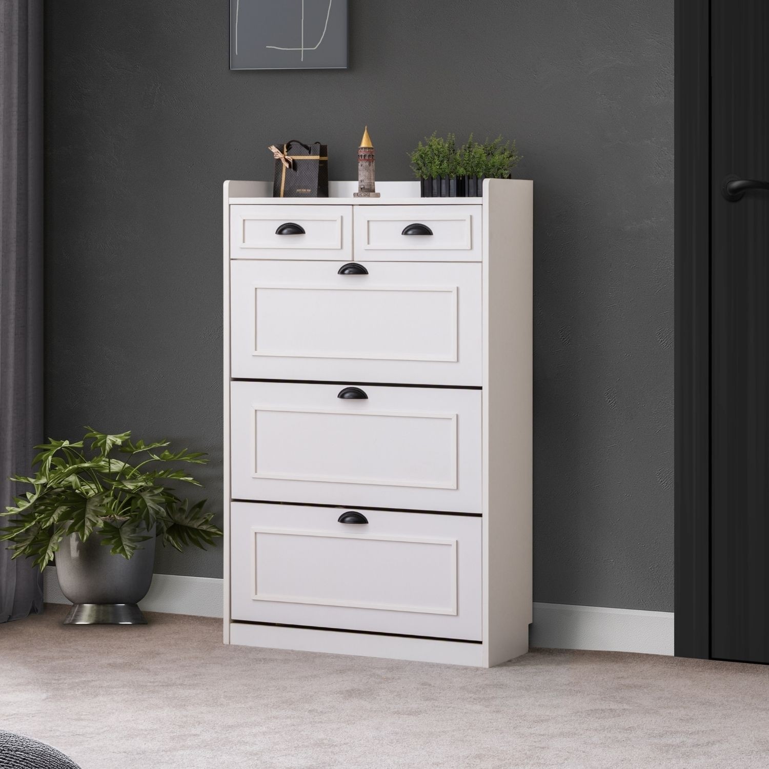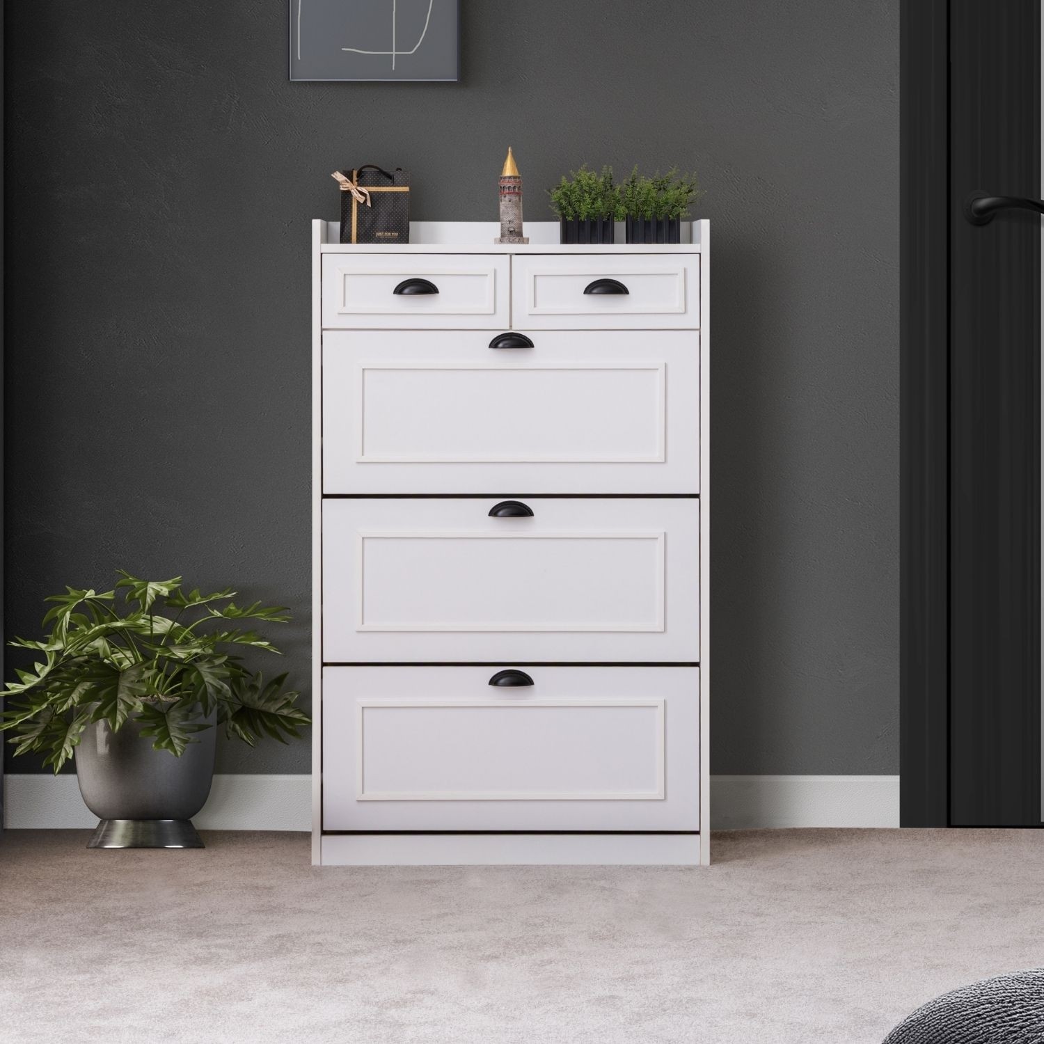 Ayakkabılık, Çırağan Ayakkabılık, Düşer Kapak Çekmeceli Ayakkabılık, Beyaz