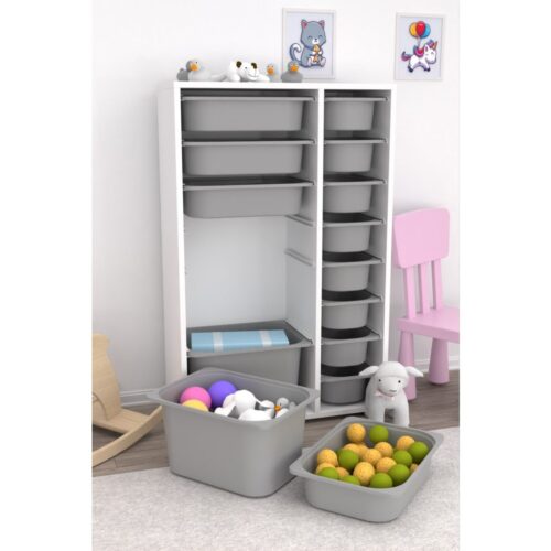 %100 MDF 16 Sepetli Oyuncak Dolabı (2 Büyük Boy Sepet, 5 Orta Boy Sepet, 9 Küçük Boy Sepet)