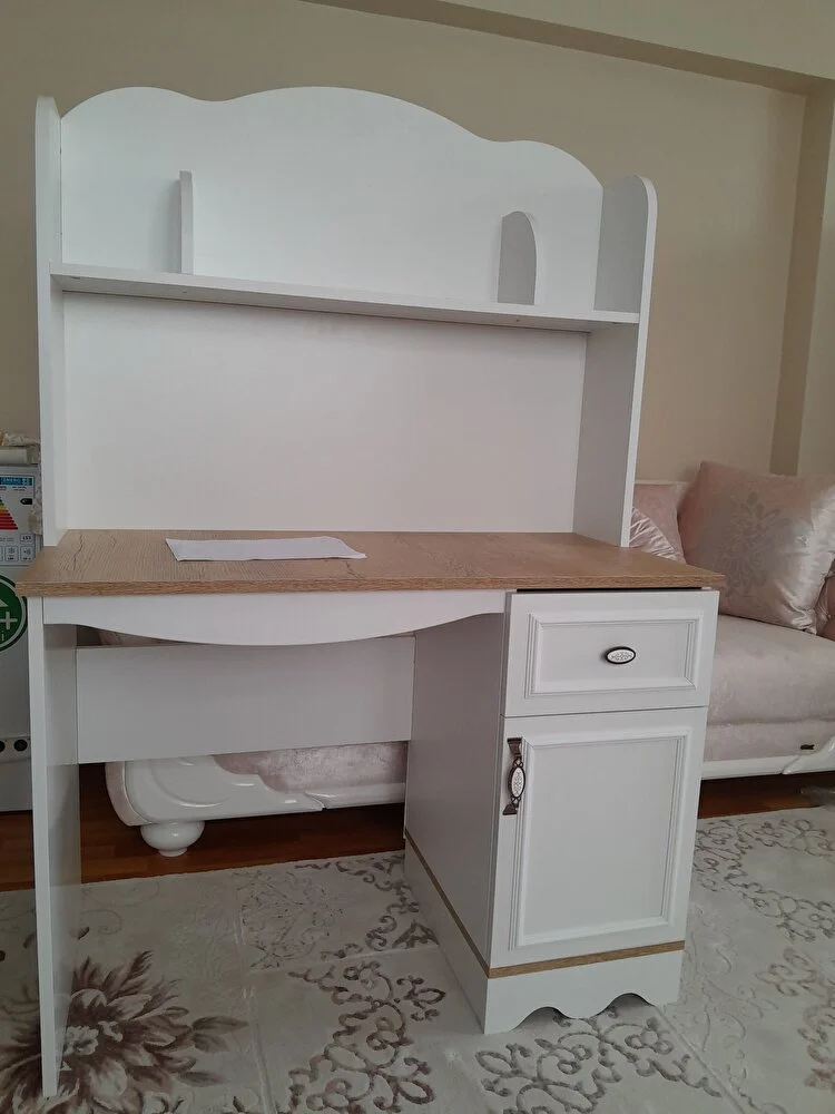 Fonksiyonel tasarım: Geniş çalışma alanı ile kitap, laptop ve kırtasiye malzemeleri için ideal.