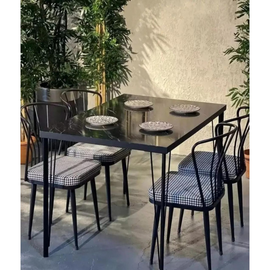 Masa ayakları döküm ve profilden malzemeden üretilmekte olup 200 derece statik fırın boya ile boyanmaktadır. Sandalyeler 200 derece statik fırın boya ile boyanmaktadır. * masa ve sandalyelerin ayaklarında plastik pabuçlar bulunmaktadır. * takım içeriği 1 adet masa ve 4 adet güneş sandalyeden oluşmaktadır.