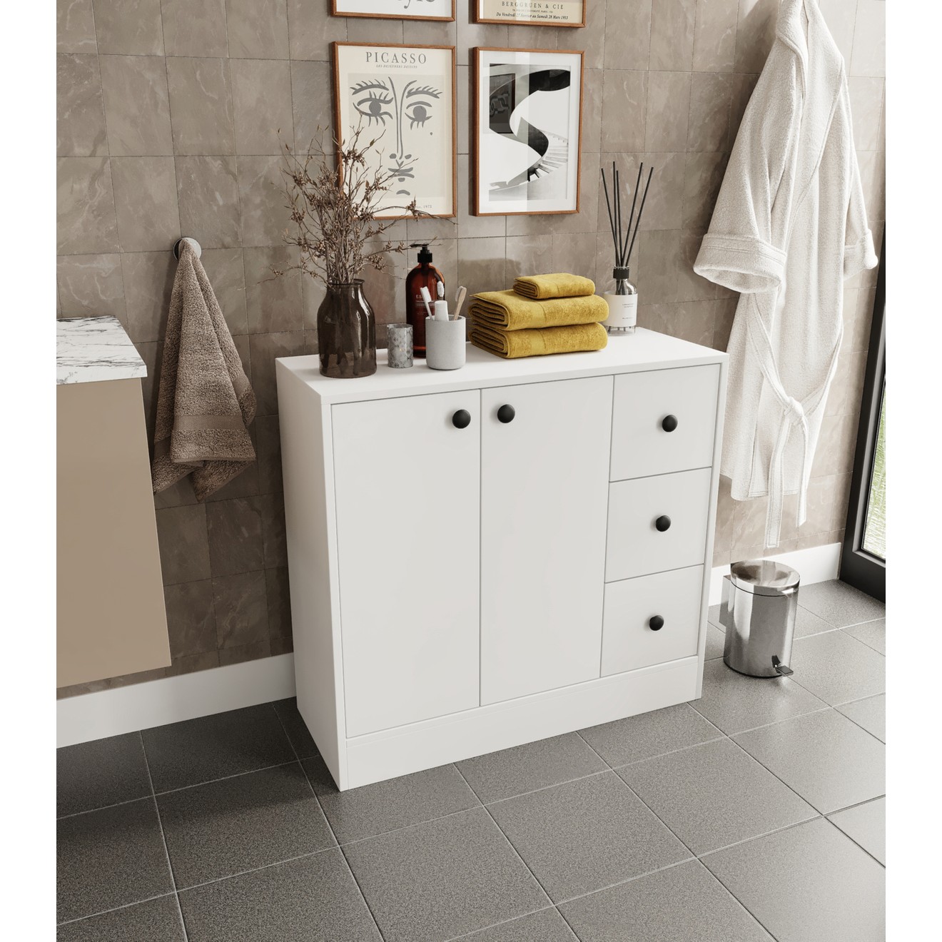Cabinse Neva Mdf 2 Kapaklı 3 Çekmeceli Çok Amaçlı Dolap Banyo Dolabı Soft Beyaz