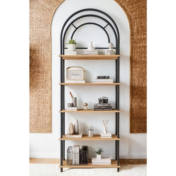 Bofigo 5 Raflı Metal Köşe Kitaplık Rafı Dekoratif Aksesuar Rafı Çam