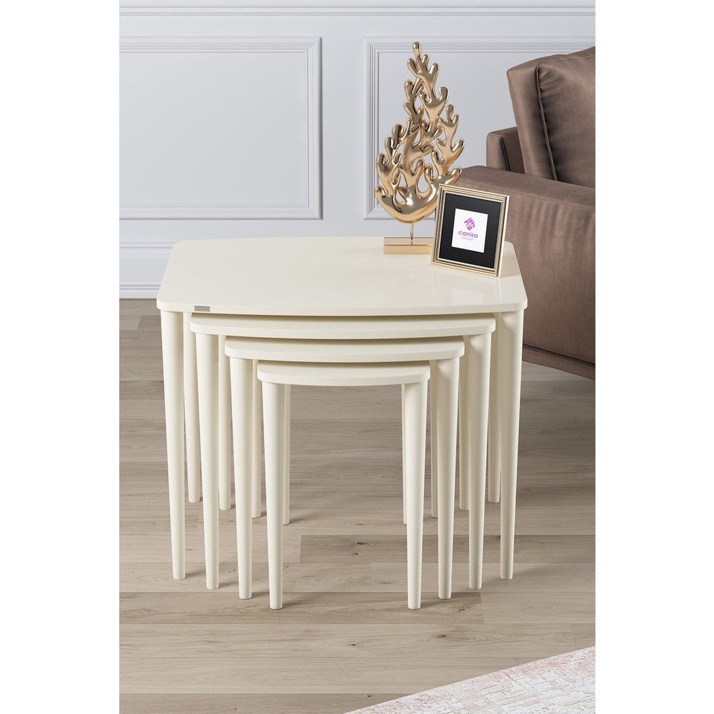 Canisa Argent Serisi Mdf ve Lake Boya Krem 4lü Zigon Sehpa Takımı Gürgen Ayaklar