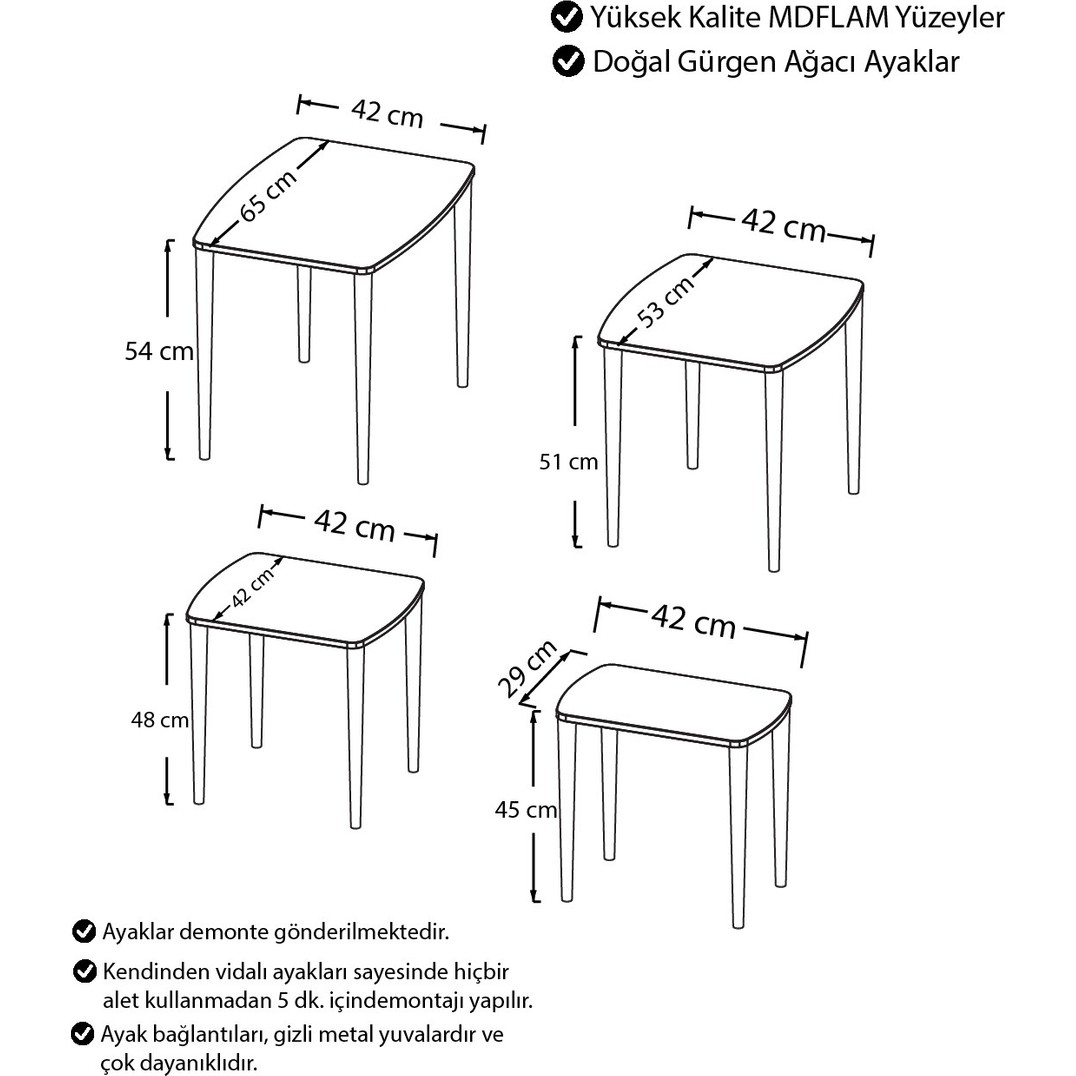 Canisa Concept Anka Serisi Mdf 1.sınıf 4lü Zigon Sehpa Takımı / Krem Renk Gürgen Ayaklar için 5 değerlendirme