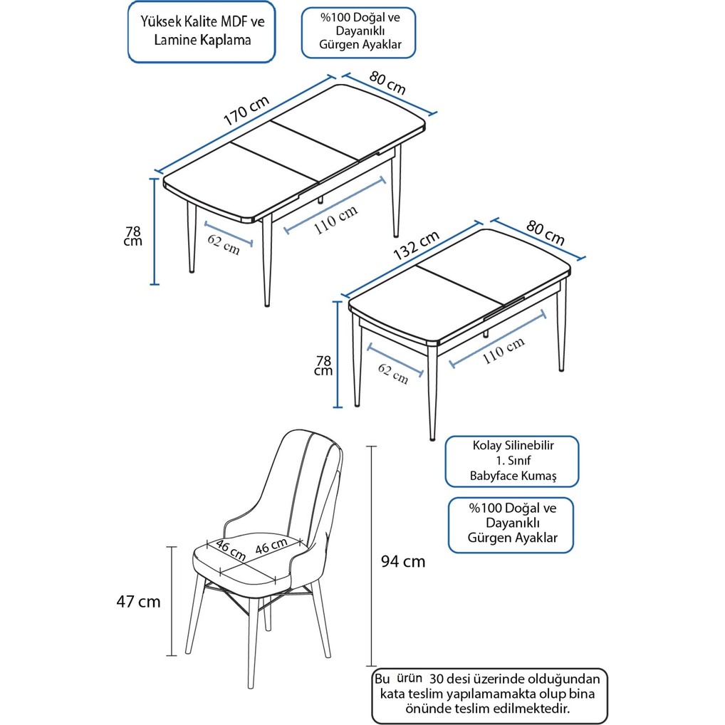 Are Serisi 80 x 132 cm Açılabilir Mdf Beyaz Mermer Desen Masa Takımı 6 Sandalye Gümüş Halkalı için 4 değerlendirme