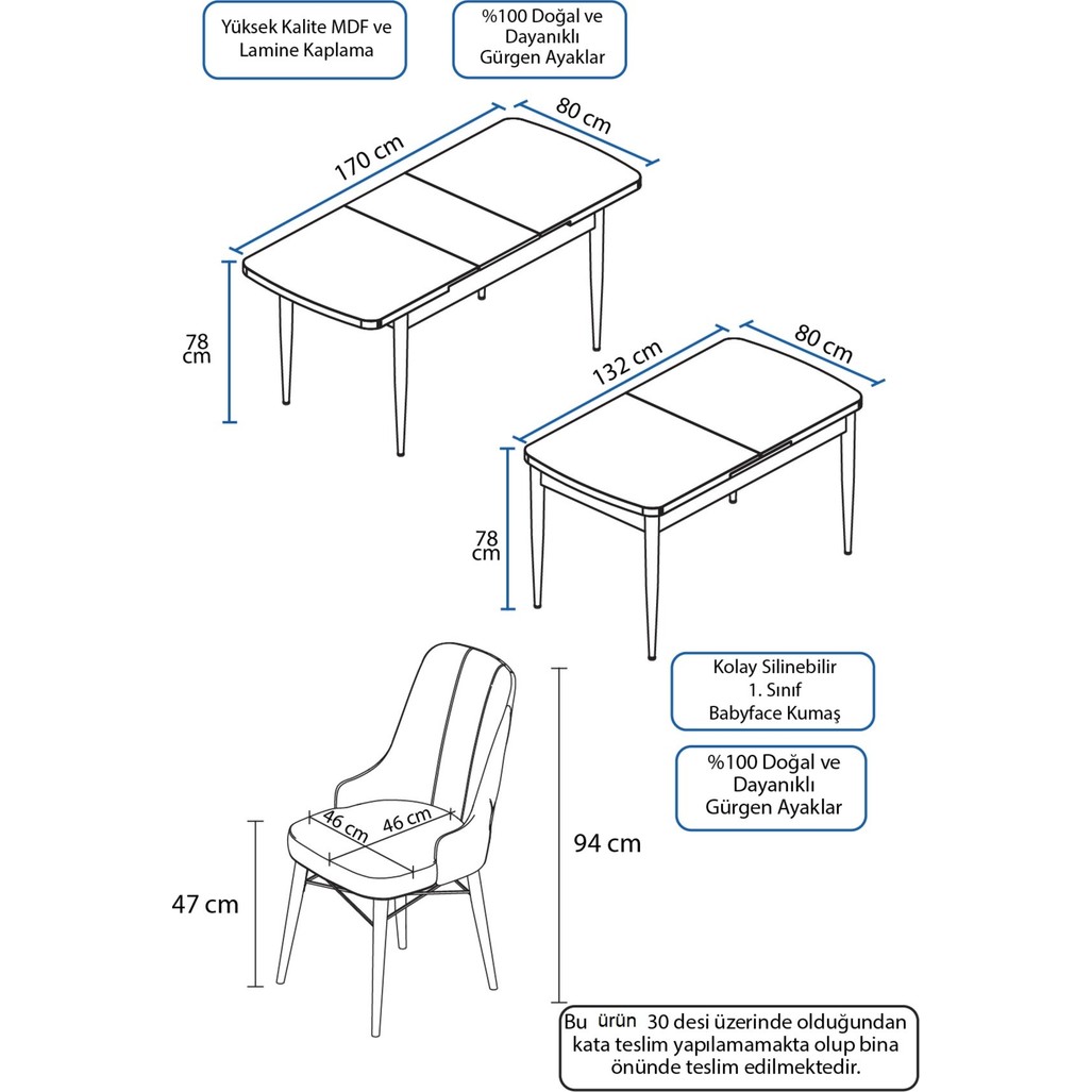 RENKLER: MASAMIZIN ÜST TABLASI MDF BAROK AHŞAP DESENLİDİR.