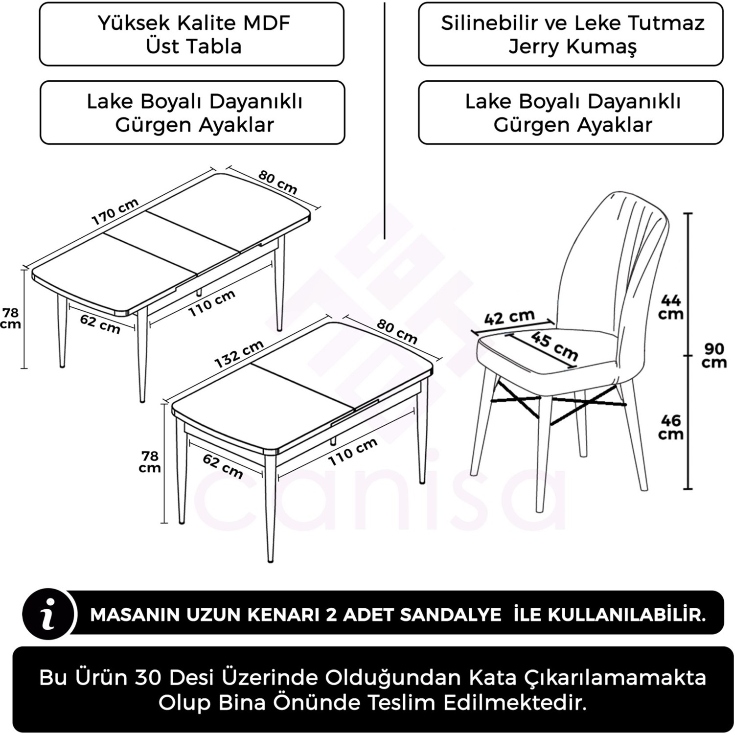 Masa Ve Sandalyelerimizin Sadece Ayakları Demonte Gönderilmektedir Ve Kuruluma Hazırdır.