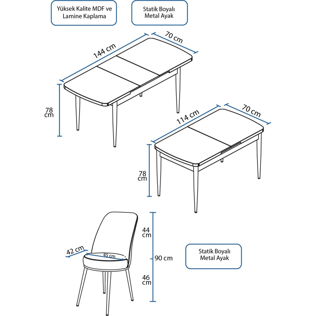 Han serisi 70 x 114 cm, açılabilir mdf mutfak masa takımı, beyaz masa ve 4 sandalye