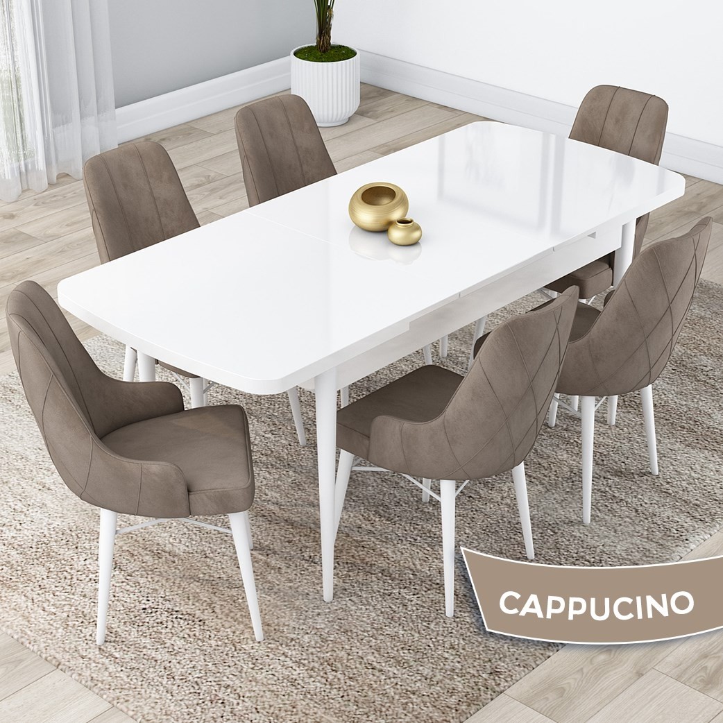 KAR SERİSİ BEYAZ AÇILABİLİR MUTFAK MASASI VE SANDALYE TAKIMI