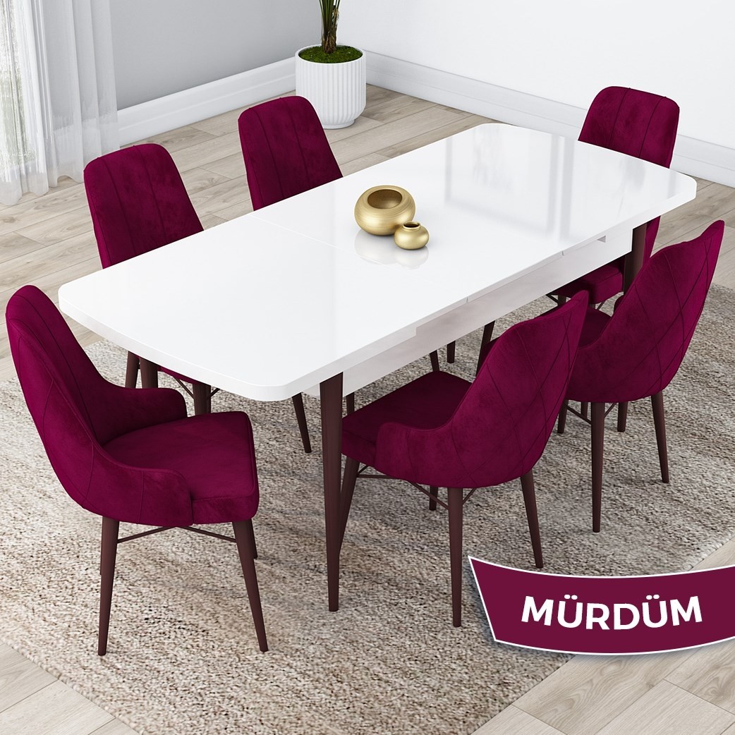 PAKET İÇERİĞİ: BEYAZ AÇILABİLİR MASA CEVİZ AYAK +6 ADET NETA SANDALYE