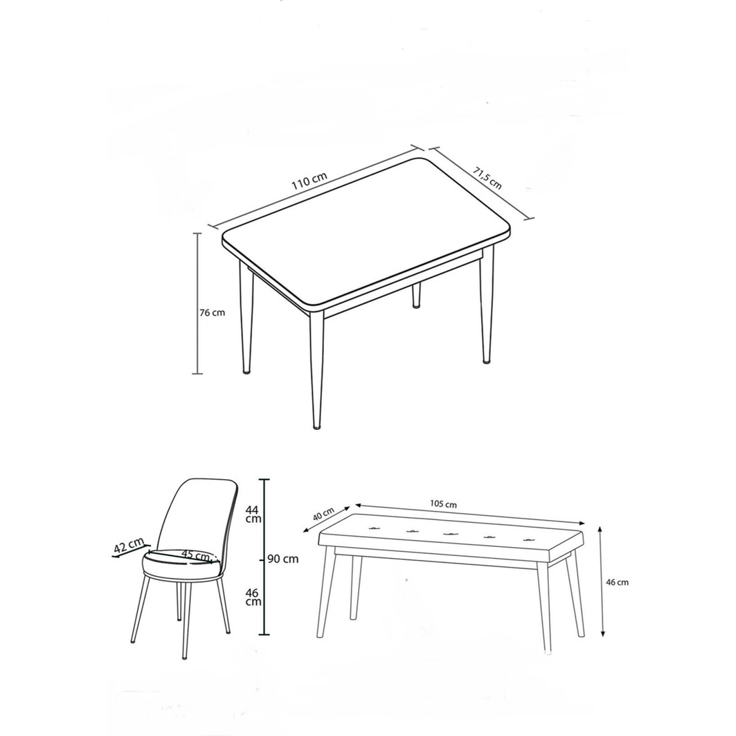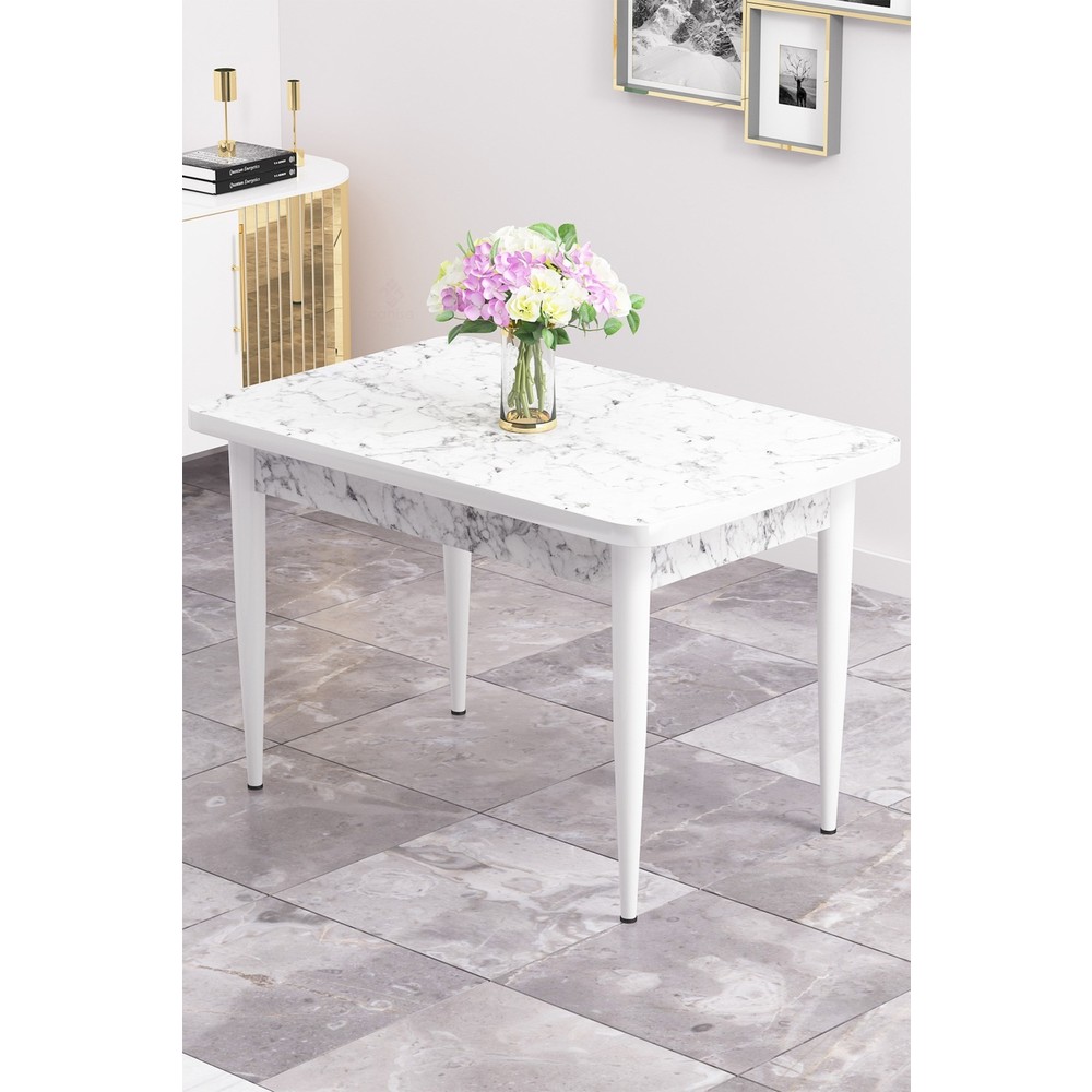 Canisa Concept Nil Serisi, Benchli Yemek Masası Takımı, Beyaz Mermer Desenli Sabit Masa