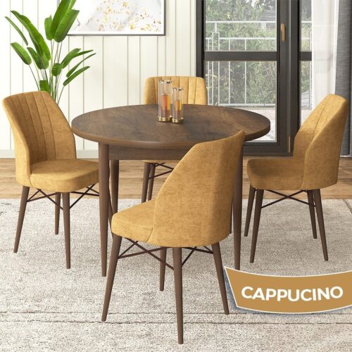 • PAKET İÇERİĞİ: Barok Ahşap Desen MDF Masa + 4 Adet Etra Sandalye