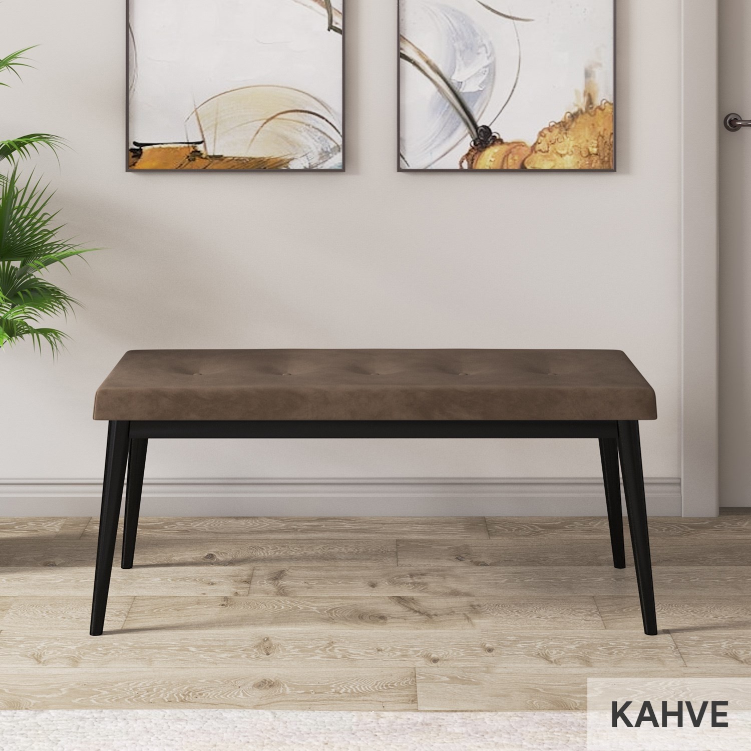 BENCH AYAKLARI DOĞAL GÜRGEN AĞACINDAN OLUP SİYAH RENK LAKE BOYADIR.