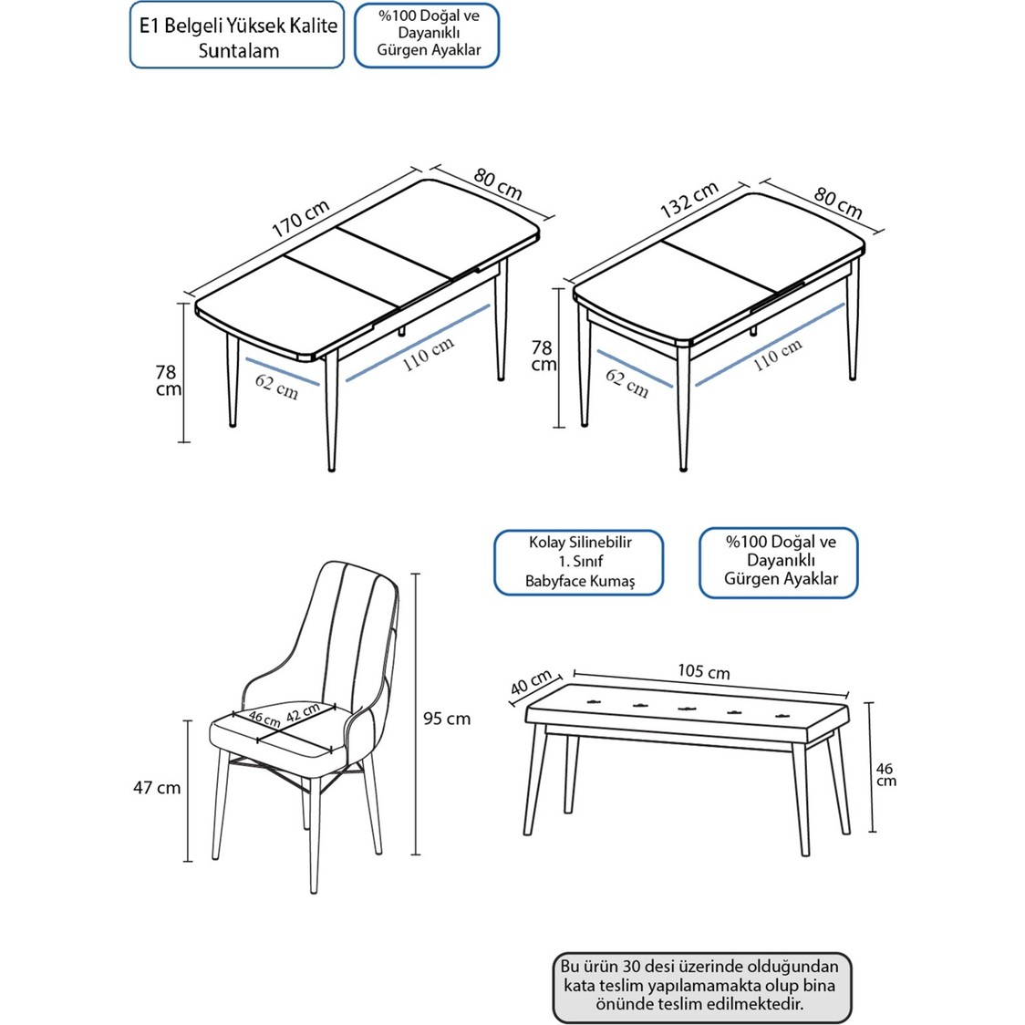 MASA SANDALYELE VE BENCH A HAZIR OLARAK GÖNDERİLMEKTEDİR.