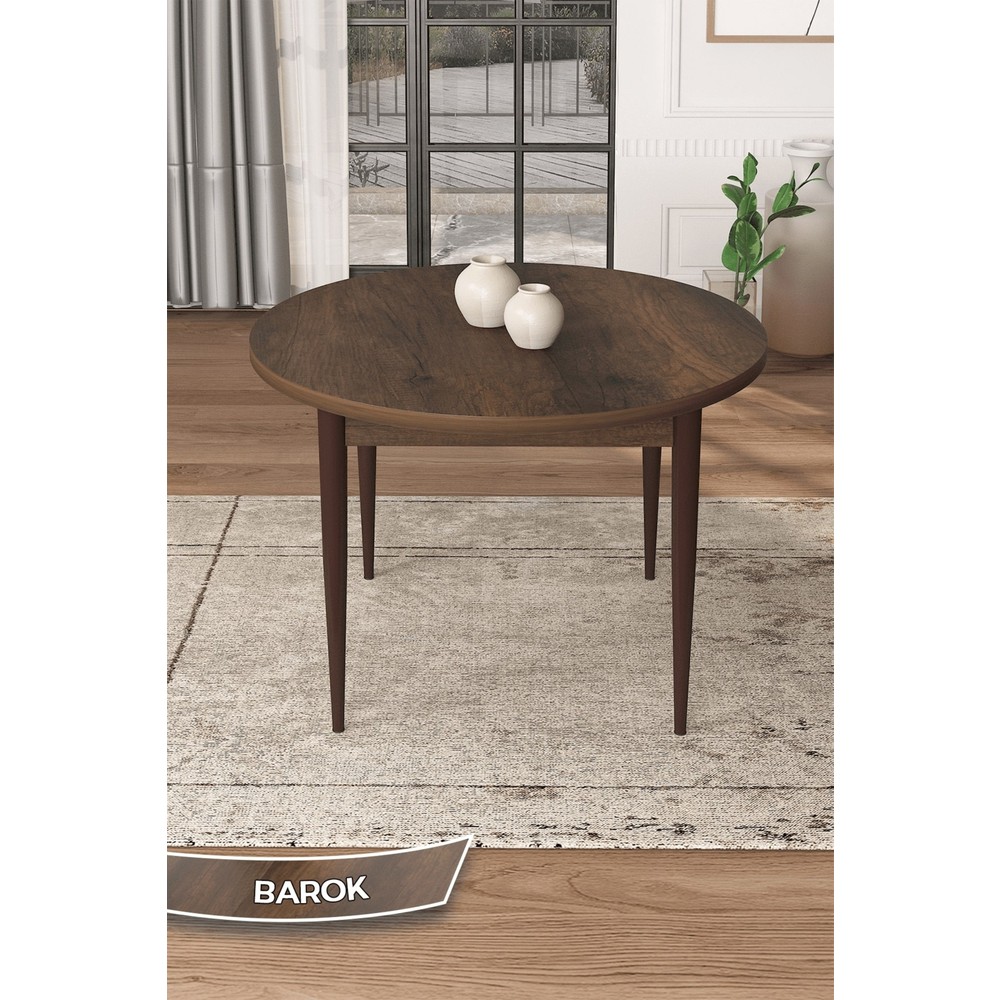 Canisa Concept Rox Serisi, Yuvarlak Mutfak Masa Takımı, Barok Ahşap Desen Masa ve 4 Sandalye