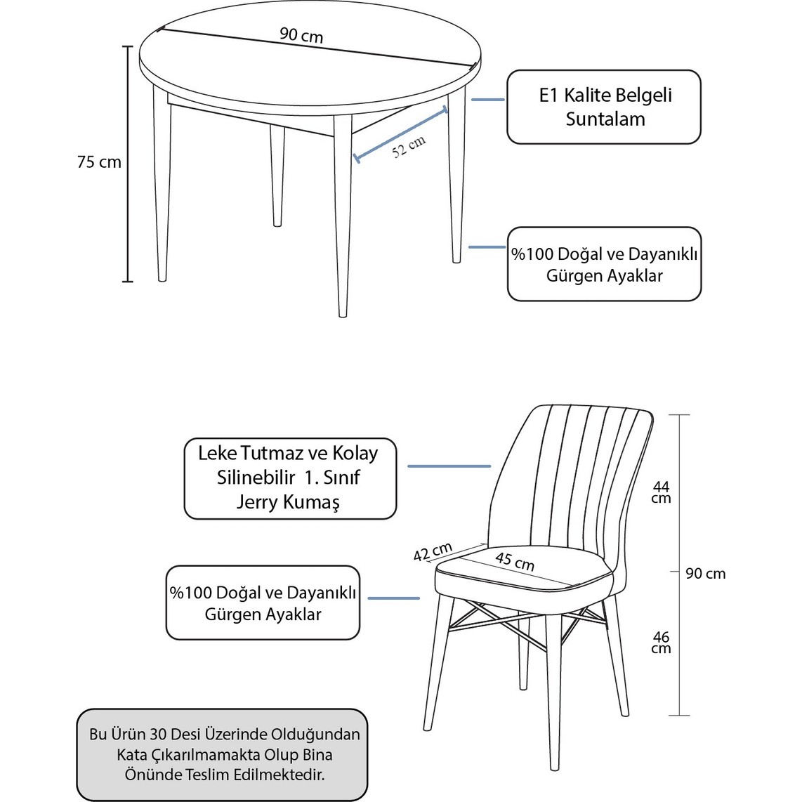 Canisa Concept Rox Serisi, Yuvarlak Mutfak Masa Takımı, Barok Ahşap Desen Masa ve 4 Sandalye için 2 değerlendirme