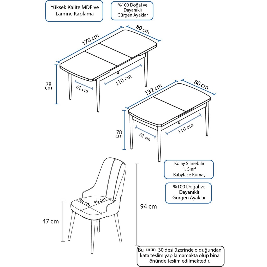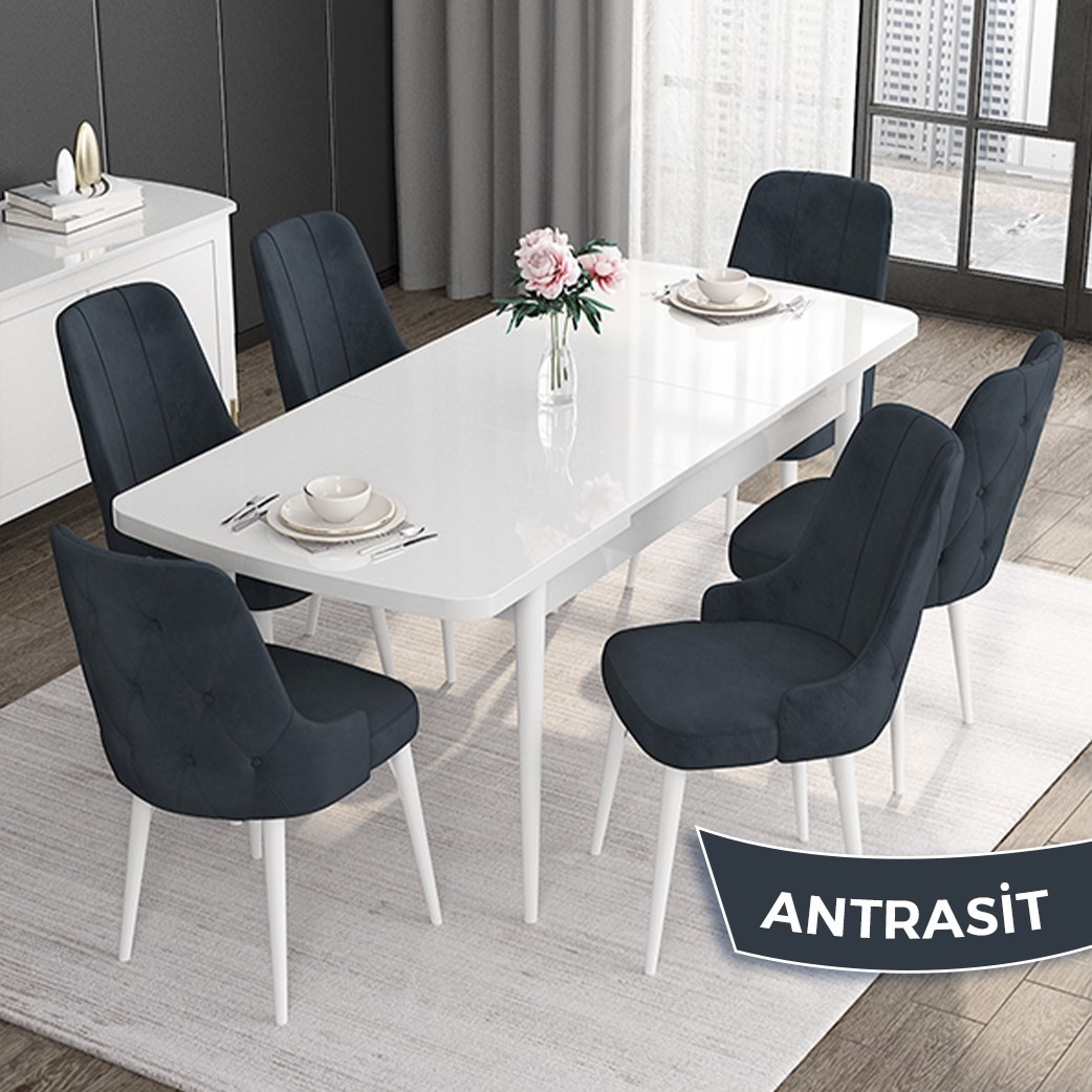 ROY SERİSİ BEYAZ AÇILABİLİR MUTFAK MASASI VE SANDALYE TAKIMI